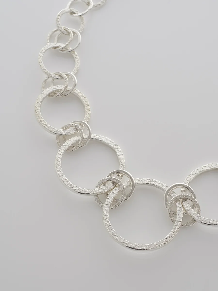 The uneven surface texture makes this eye-catching, unique necklace, perfect for everyday, with a simple sophistication that can be dressed up or down.